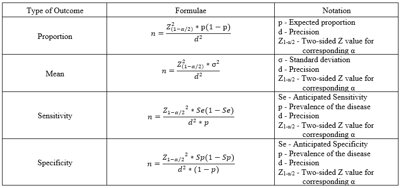 - Mathematical Formulas for calculating sample Sazes :