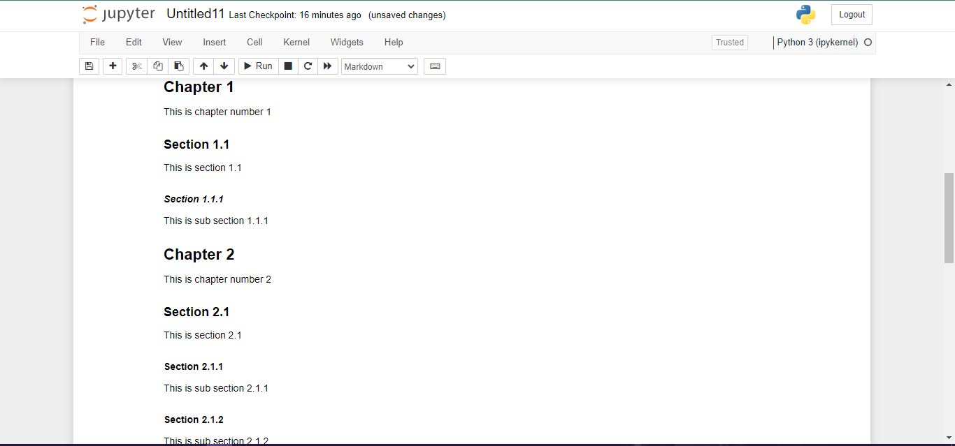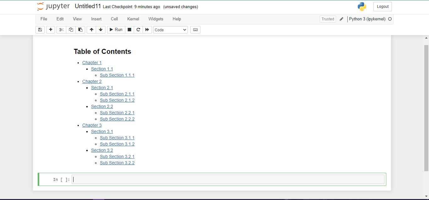 * [Sub Section 3.2.2](#sub_section_3_2_2)Press Shift + Enter to run the previous lines in the Jupyter notebook. The table of content should display like this:
